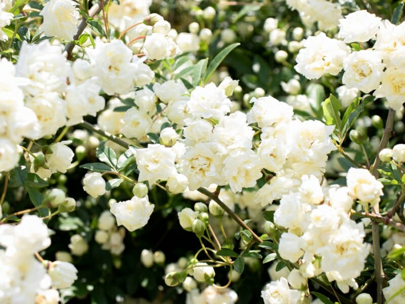 肥料食いといわれるバラですが、モッコウバラは肥料を与えすぎると花つきが悪くなります。白い花は特に花が咲かないこともあるので、肥料を与えすぎには注意が必要です。