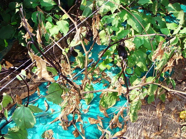 青枯菌は高温25℃ぐらいになると発生が増えますが、20℃以下ではほとんど発病しないといわれます。そのため露地栽培では敷き藁やシルバーマルチ、ハウスなど遮光ネットや白黒マルチなど使い、高温にならないようするのも発病を遅らせる効果があります。