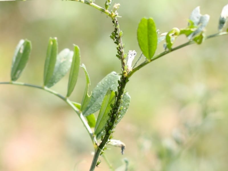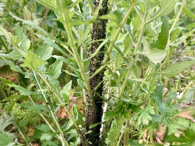 アブラムシは直接植物の汁を吸うことで葉や茎に害を与えるだけでなく、排泄物を作物にかけ、黒いすす状のカビを増殖させたり、光合成が妨げられて作物の生育を悪化させます。