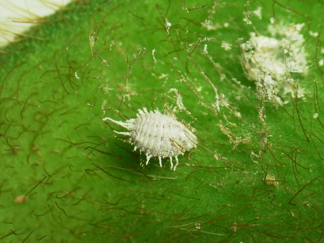カイガラムシは、樹木の茎や葉に寄生して、植物の汁を吸って加害する昆虫です。カイガラムシには多くの種類がいますが、アジサイに発生しやすいのは「アジサイワタカイガラムシ」や「クワコナカイガラムシ」です。