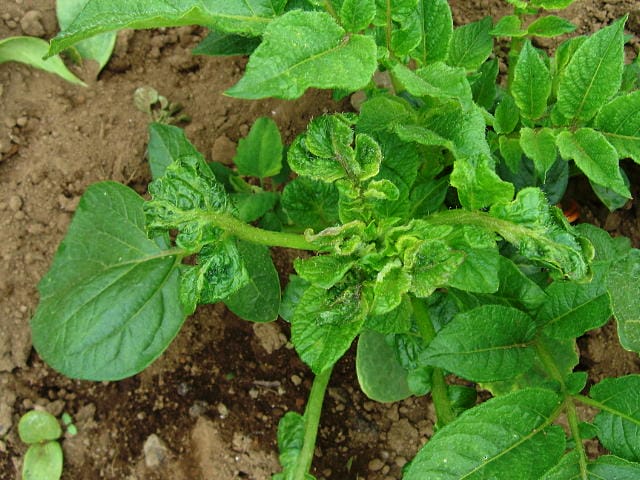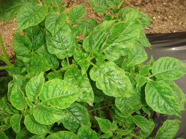 モザイク病は、じゃがいもの生育期間中はいつでも発生します。