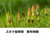 グリホサート系の除草剤は、葉や茎がある程度成長していないと、薬液が根までとどきません。おすすめは関東西以では、最適な時期は4月~6月、草丈20㎝~30㎝になりスギナの背丈がそろっているときに散布するのがおすすめ。